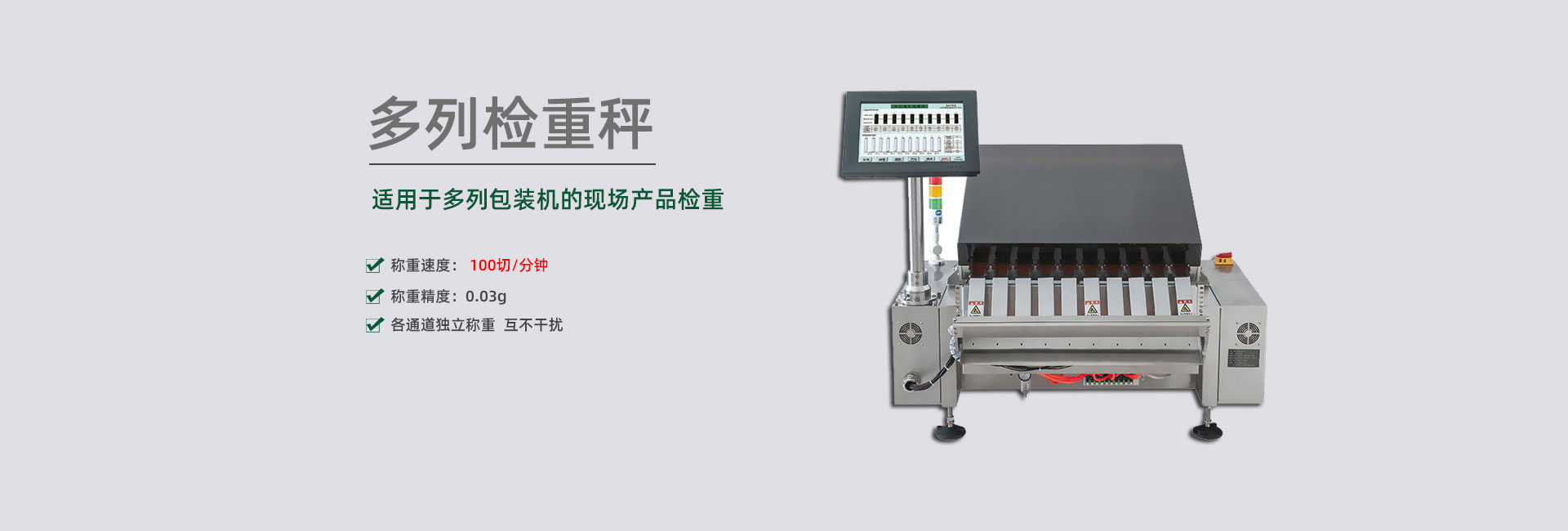 擁有各種剔除方案的專利,包括多列稱重結構的剔除裝置,可杜絕不合格品誤通過,準確剔除各種高速、超薄、片狀、易碎,軟包、空包等物品,包括多列高速產(chǎn)品。